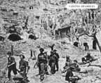 Behind the fighting line, however, fortune had failed the Indians. 1/6 Rajputana Rifles were pressing forward to support the Essex when enemy defensive fire caught them, inflicting many casualties. The night was impenetrably dark, with a thin, soaking rain. Except for the crash of shells on Cassino Town there was little guide to direction. The Rajputanas reached the outskirts to find that under the air bombardment the streets had disappeared. Only masses of rubble and tottering walls stood where a town had been; from deep hide-outs snipers and tommy-gunners crept to blaze at the passing sections from point-blank range. Two companies of Rajputanas made their way through the Castle and joined the Essex at Point 165. The other two companies had been dispersed and were withdrawn from action. An unlucky shell crashed into battalion headquarters and all officers present, including Colonel West and his adjutant, became casualties. Next morning the two forward companies which had reached the Castle, under Major Scaife, were merged into the 4/6 battalion under Colonel Scott.