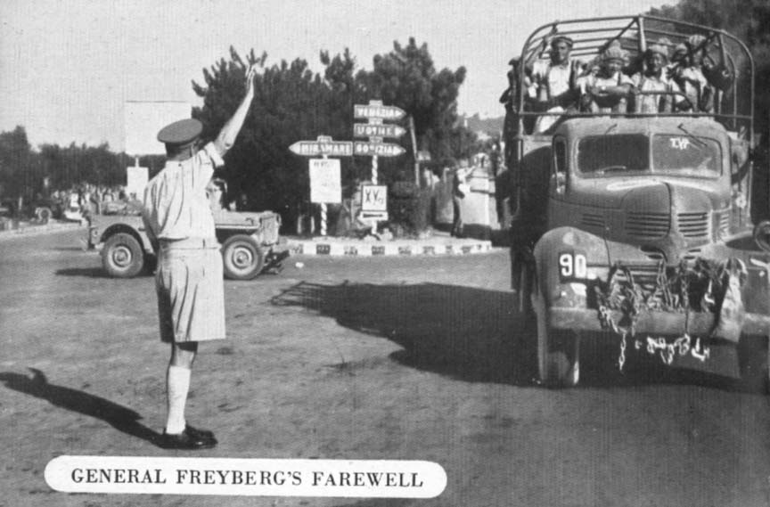 The tension relaxed, agreement over Trieste was reached, and the mission of the Indians fulfilled. 43rd Gurkha Lorried Brigade was first to go. The New Zealanders regarded the hillmen as their own, and when the Gurkhas took ship they sailed from the midst of their great-hearted comrades. The bands of the New Zealand Division played each battalion aboard, and Sir Bernard Freyburg stood by the roadside, and later by the shipside, to give all godspeed. The Kiwis lined the streets as the columns swung past. "Good-bye, Johnny," they called, hands flung high---a soldier's farewell between men diverse in colour, creed and culture, yet who in service of the same cause had compiled records of skill and valour unmatched in the history of battle. Tenth Indian Division crossed Italy for a tour of duty in the Milan area. In December the Indian units took the roads to a southern port. Then came the wrench of parting, for the British formations, infantry, artillery and services, were left behind. Indian and Briton alike felt emptiness, for each in his heart knew the Indian Army to be an indissoluable partnership, in which the old concept of subject and dominant castes has disappeared, and in which all races are now brethren in arms.
