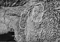 | How the Burmese jungles look to an R.A.F. pilot dropping incendiary bombs on Japanese stores hidden beneath the trees. |