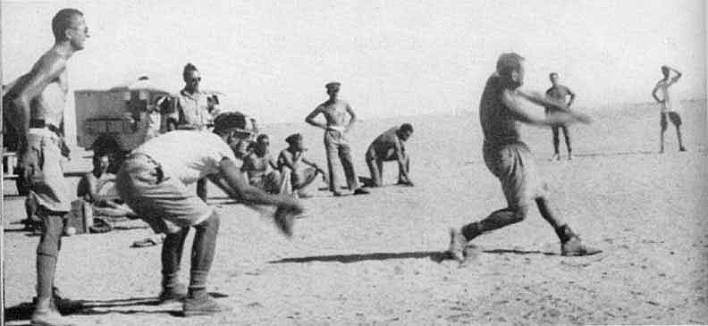 Gosline's section made the rendezvous by a different route, but nevertheless the joint official report said that W Track was "nonexistent." After that, for a while, the platoon was more content to sit in idleness---playing baseball, getting used to the desert, and watching the numerous huge convoys of tanks, guns, and troops rolling up toward the Alamein Line.