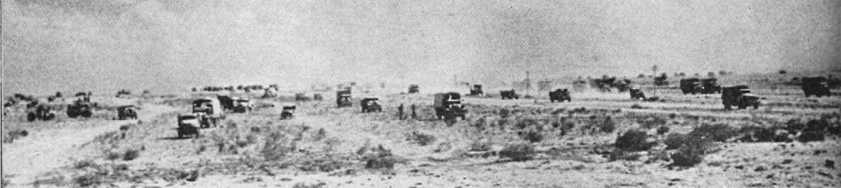 However, "the five days coming back were something to forget," wrote H. F. Nomer. "We'd sleep in tents and wake up in the cold dark morning, pack our kit, and climb into our respective lorries, 10 to each lorry. After arranging the mountains of bedding rolls, kit bags, and musette bags, we would wrap ourselves snugly in blankets, sweaters, greatcoats, and so forth, and settle down for the morning. After stops every hour on the hour . . . we would make a half-hour stop at 11:30 for lunch. . . After lunch we would settle down, this time with fewer blankets, as the sun would be quite hot by this time. Off we'd go and eventually reach our destination about 4 P.M. Most of us by the time we reached Tulkarm had acquired beautiful cases of sun and wind burn. Mine was so bad that burnt flakes of skin kept peeling off my face, and my face looked as though I hadn't washed it for weeks."