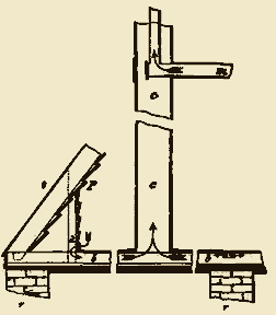 | FIG. 2.--- Transverse section of a Minden Prussian barrack --- a a. False roof covering the ridge; b. Openings in the ridge; c. Window; d. Ventilating shaft, enclosing the stove pipe; f. Water-closet. |