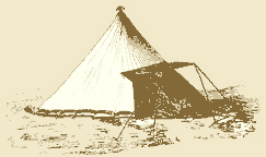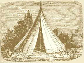 "The subject of tents, which has been greatly complicated, is in reality very simple; their construction has been determined by a few general principles only. The frame-work is evidently the essential part, since it establishes the form and capacity of the tent, and no rational classification can rest on any other basis. From this point of view tents maybe divided: first,---into tents having a single mast; secondly,---into tents having two masts, with or without ridge poles; thirdly,---into tents having several masts or props; fourthly and finally,---into tents without masts."(226)