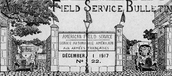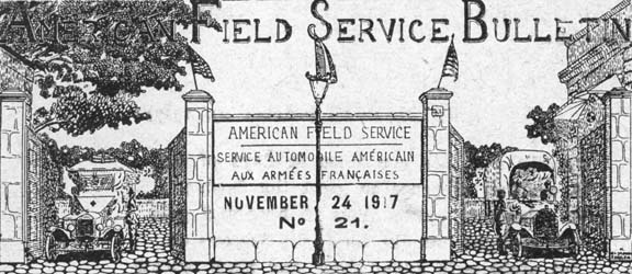 Very shortly the Volunteer Automobile Service With the French Army will be a thing of the past. The record and history of the American Field Service will not be complete until the end of the war. Its members serving in all branches of the United States Expeditionary Forces received their first opportunity in this Service and they are certain to look back to their volunteer days in France with pride and with a sense of increased usefulness due to the part they have already played.