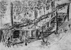 The primary purpose of buvettes is the sale and distribution of vin blanc, and in a land of foaming beer and cocktails it would certainly be a failure. But in the war zone such things are not known, and buvettes are frequented in great numbers by poilus and others who are thirsty. The poilu will fight without food or water (quite well without the latter) but he has got to have his pinard The proprietor of a buvette is generally a madame... not the chin-chucking, bar-maid variety, but a seasoned dame of forty years and up. The wine list is always varied ... varied twice. You can get either vin blanc or vin rouge, and both are very sour. In swell buvettes you can get lemon or strawberry syrup to put in it, which makes it even worse. Wine is served in litres or in «chaupines», but a chaupine is only half a bottle, so you may as well order a litre in the first place.