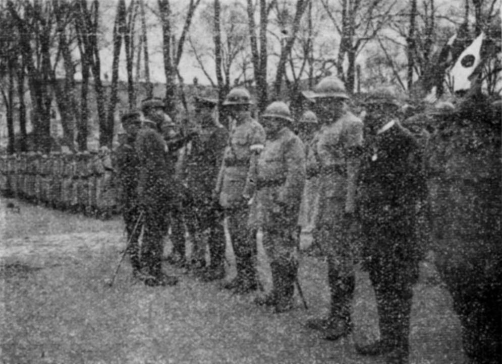 Louis G. Mudge (T.M.U. 537), American Red Cross; E. Mack Gildea (T.M.U. 133) ; H. A. Innes Brown (S.S.U. 3), 1st Lt. S.C.; Cyril Smith (S.S.U. 12), U.S.A.A.S. ; Robert G. Eoff (S.S.U. 18), Lafayette Escadrille ; H. P. Kennedy (T.M.U. 526), 2nd Lt. Q.M. US.A.; Buford A. Clark (T.M.U. J84), 2nd Lt. Q.M.U.S.R.; Powel Fenton (S.S.U. 3), 1st Lt. Air Service.