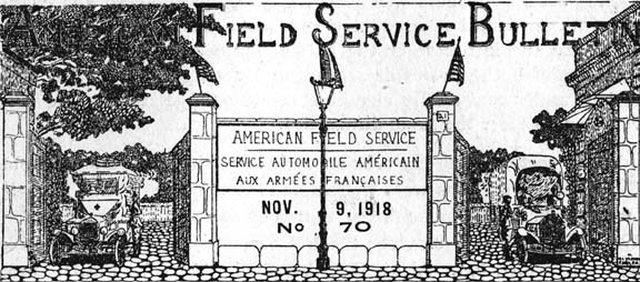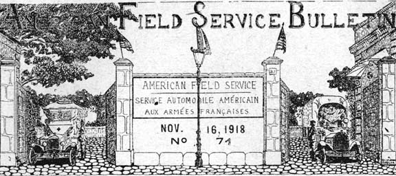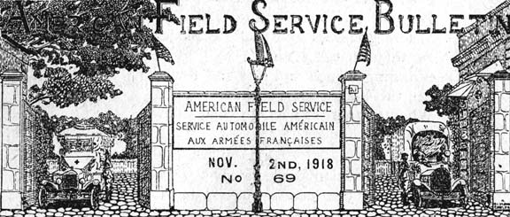 During the Allied advance on the Western front since September 25th the ambulance sections have been most active and many of the former Field Service sections have performed especially dangerous and arduous work under the most difficult conditions. Much of the evacuation was through devastated country where the roads were in truly terrible condition, full of shell holes and mine holes and crowded beyond belief with convoys of every description and with troops ---at times it required from one to two hours to go a distance of five kilometres.
