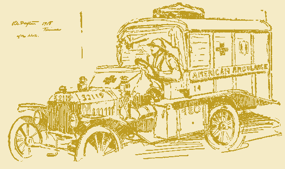IT seems as though every time I go on duty new experiences increase my hatred of the hell of war. I cannot tell you all of them, the censor would object; but I do wish there was some way of telling you just how stoical to suffering the French poilu is. This is an impression that grows on me, with every wounded man that I carry. One has to become accustomed to so many heart-tearing scenes. The sight of blood-soaked bandages is frequent; but to see a young fellow with blood matted between a week's growth of whiskers and perhaps partly covered with mud; to see a pair of sky-blue eyes peering out from the paleness of intense suffering, and perhaps to hear him talk of home in his delirium, are things one can never become accustomed to. Strange as it may seem, I have never seen a wounded Frenchman who was unconscious no matter what the pain. I had one soldier whose leg had been broken below the knee by a piece of shell, and in some way his foot had got turned partly around. How the poor boy kept from groaning, I never knew. But what was more, he partly sat up in his stretcher and asked one of the carriers to turn the foot slowly back again. Cautiously and gently his comrade worked, until the suffering poilu said, "There," as he lay back on the pillowless stretcher. Your imagination can never paint the picture; you must see and experience the bravery of wounded France to realize her spirit. Boys of eighteen, men of forty, all give their lives and suffer for ideals that mean more to them than life. And then comes our part --- to get the wounded poilu quickly to the hospital and to the skilful surgeon, for time means life. And yet one must drive carefully, for every jar means agony.