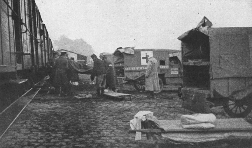 I HAVE had no time to write this week on account of the attack in this sector, which we had been waiting for ever since we arrived here, knowing that when it did come there would be plenty of work. Last Saturday every car was gone over and finishing-touches put on, for we had been told that the great event would come in the morning; and sure enough, by eight o'clock the first wounded began to come in, when from then on car after car drew up and was unloaded. The sitting cases were smiling and happy for the most part, glad of a wound to keep them out of it for a time, though many complained that they would only be out for a month or so. But the lying cases were frightful and showed war in its most ghastly aspects. It was our first experience with any number of cases which had had only rough poste treatment, and I admit it was sickening. That feeling, however, has gone now, after a week of steady work and seeing such revolting sights so often. The mud from the trenches, of course, made the shattered men lying on the stretchers appear far worse. Most of them seemed to be hurt in the head or about the legs, and were carried into the big tents to a long table, where their wounds were examined hastily and the men assigned to different tents, according to the nature of the wounds. The surgeons soon were busy, performing one operation after another, while a long line of stretchers waited their turn. They stood on their feet doing this difficult work all day and most of the night without a let-up, and have stuck to it. For the most part, no anæsthetics were used. These French soldiers are a brave lot.