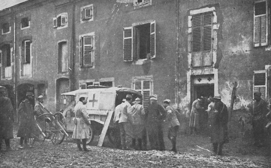After a ten-day repos at Combles, the Division went into the lines, again at Verdun, and captured Hill 344. We carried 4210 wounded during the ten days the Division was in the lines. On December 3 the Section went en convoi to Bar-sur-Aube, where it remained en repos for a period of two weeks. At Darney we settled down for a long cold winter. On January 21 of the new year we quit Darney, going to Custines, a small town on the Nancy front. From here we operated postes in and around Nomény.