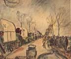 No one answers my shout. I look into the dimly lighted houses. Dozens of men, sleeping on piles of grass next to the ground. No one awakes. Then two men walk out of a tent. They are Russians. I approach one of them. With the few French phrases that I understand and a wealth of sign language, I make him understand that I seek the route to G-----. He gives me instructions in Russian. As I do not understand, I take him by the arm and insist that he accompany me. He does so, patient though he is, in a spirit of willingness which surprises me. I address him as "Bon camarade."