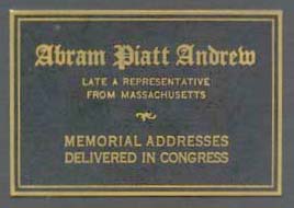 ABRAM PIATT ANDREW, SIXTH CONGRESSIONAL DISTRICT OF MASSACHUSETTS Educator; editor; soldier; Director of the Mint, 1909-10; Assistant Secretary of the Treasury, 1910-12; Member of the Sixty-seventh and each succeeding Congress. Died June 3. 1936.
