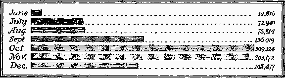 The canteen work right up by the front lines is undoubtedly the most interesting part of the whole canteen service. In this work, men often worked under shell-fire for days, beset by difficulties, surrounded with dangers, distributing hot drinks, cigarettes, tobacco, chocolate, medical supplies and other articles to American and French soldiers near the front lines. There were twenty-two of these canteens and six outposts, through which 5,788,110 hot drinks were given away. The growth of this service is shown by Diagram 6 above.
