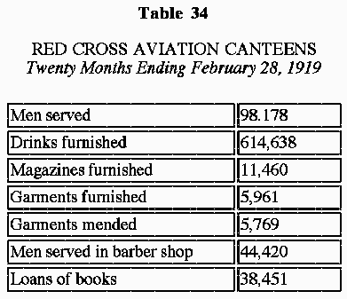 In four American aviation camps the Red Cross operated canteens which performed a combination of canteen and camp service, distributing food, clothing, games, and comforts. The following table gives statistics concerning a part of this work: