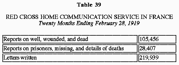 Representatives of the Red Cross were attached to every United States division and naval station in France. Their task was to do everything that could be done legitimately to aid the troops and to add to their comfort. Through them, troops in financial troubles were aided; if family troubles developed, steps were taken to assure that the Red Cross organization in the States reached out a helping hand to the family concerned; thousands of letters were written for boys unable to write; personal services of numerous kinds were rendered; newspapers and periodicals were distributed by the millions; all activities for entertaining the troops were fostered; comfort supplies were issued by the million---particularly the knitted sweaters, socks, etc., made by the chapter women in America.