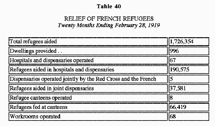 Again, the main efforts of the Red Cross were directed towards assisting in every way possible existing French agencies engaged in such work. In only a few instances were institutions operated directly by the Red Cross. A brief statistical summary of the work follows: