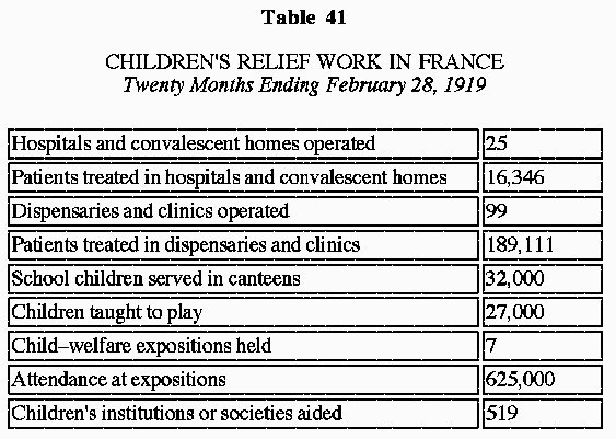 While the immediate value of the children's work in France is self-suggestive, no doubt a great permanent gain will be made through the stimulation this work gave to all welfare work with children.