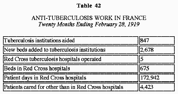 The Red Cross part in anti-tuberculosis work in France extended beyond the work for French nationals just described. To mention only two instances, it assisted in the development of a hospital for use by tubercular American troops prior to their return to the States, and directly aided agencies for tubercular Serbians in France.