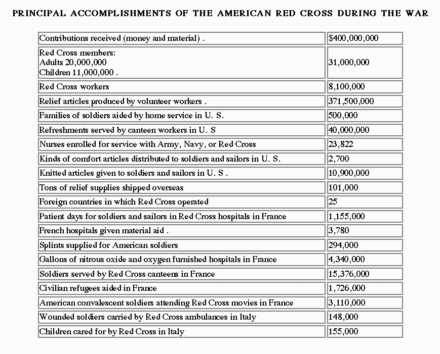 17. Some of the principal articles distributed free in camps and hospitals in U. S. by the Red Cross