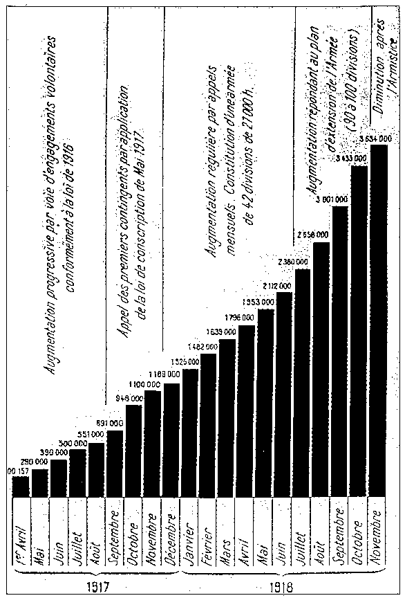 There were two positions in France. That of the French ambassador to the United States which opted for a rather limited presence of troops and for the concentration of efforts on the furnishing of arms, munitions, food supplies, etc. And that of the Council President, Paul Painlevé, which recommended the sending of as many volunteers as possible: 300 to 500,000 men would be welcomed.