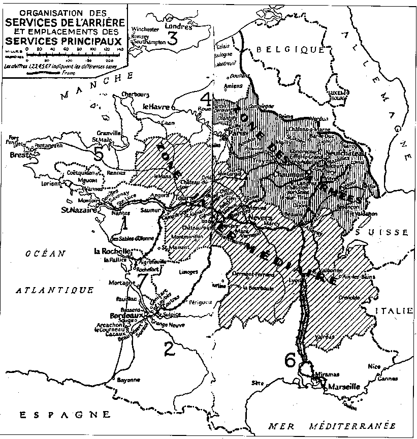 Immense warehouses and storage areas were set up in the vicinity of the largest ports: Montoire behind Saint-Nazaire, Saint-Sulpice d'Izon near Bordeaux, Miramas near Marseille.