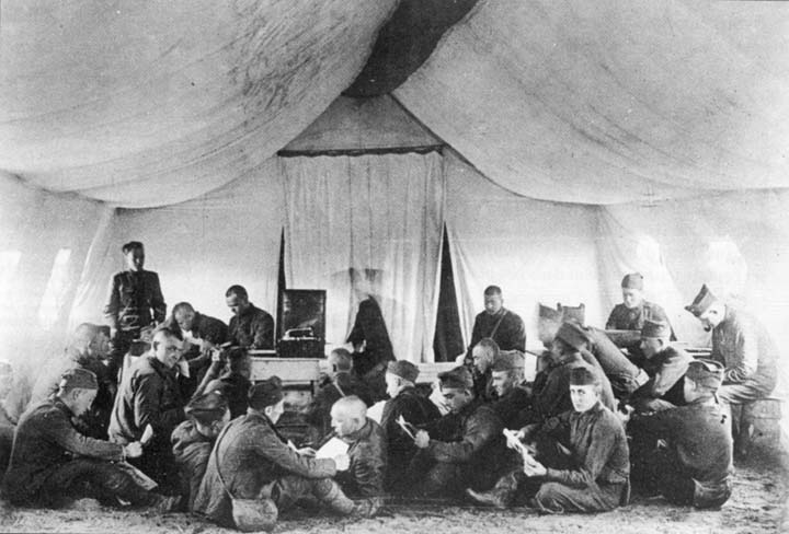 Towards the end of June, more than 300 barracks were erected. On the 20th, officers and enlisted men arrived, along with 65 nurses and other personnel, to comprise the first hospital unit (Base Hospital n° 26) at the completed premises. From June to September, four other units would be put in service. The first wounded did not arrive until July 23d.