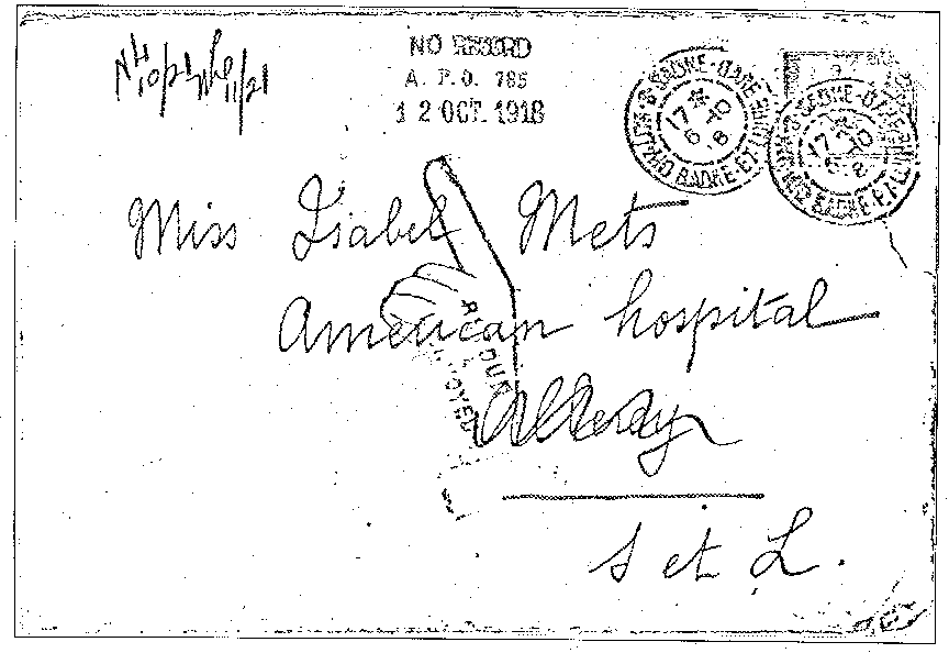 Les activités postales du Centre hospitalier commencèrent le 6 juillet 1918, mais il ne reçut son propre numéro de secteur postal que le 25 août, à savoir : A.P.O. / 785. Le bureau occupa alors un bâtiment prévu spécialement, jusqu'au 6 mai 1919.