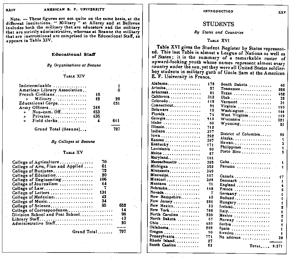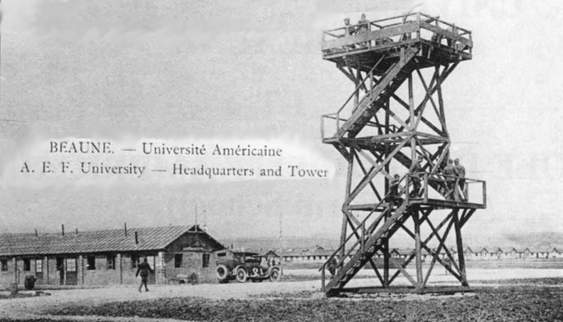 C'est alors qu'en janvier 1919, le G.Q.G. américain, désireux de maintenir ses unités avec leurs cadres, décida la création, en France, d'une véritable Université temporaire pour permettre aux étudiants mobilisés de reprendre leurs études, à proximité de leurs corps, avant leur rapatriement différé. (27)