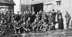 Les cadres de l'Ecole d'Agriculture d'Allerey devant un bâtiment du camp.