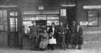 La marchande de journaux américains devant la mairie et l'école de garçons d'Allerey.