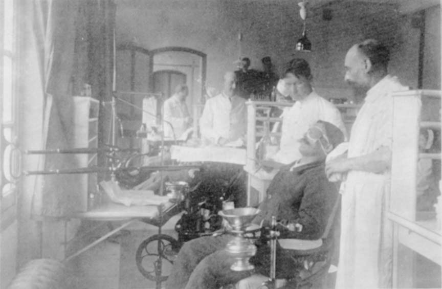DENTAL DEPARTMENT. The Dental Department dates from the inception of the American Ambulance, and it was organized, equipped, and ready for work on the day of opening of the institution. Up to this time no other military hospital had made provision for dental surgery, but the English and French soon after began the organization of similar departments, which brought the general surgeons and dental surgeons into a mutual co-operation and interdependence which had never existed before. The novelty and unprecedented nature of the work soon became apparent, for, whilst fractures of the maxillæ had been classified, and their treatment indicated, no reference books could be found recording the treatment of the terrible devastation caused by the projectiles of modern warfare.
