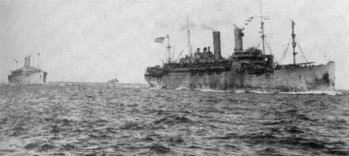 The troop ships were preceded by an auxiliary cruiser for about one-third of the way across the Atlantic.