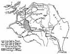 British traditional lines of defense of England, diagrammatic only, 1' around London, 2' along British coast, 3' in Northern France and Belgium. This shows how the British desire to capture Ostend and Zeebrugge and to concentrate their forces in the north, while bettering protection of England, tied down and overstretched the French army, which was holding much greater proportion of line.