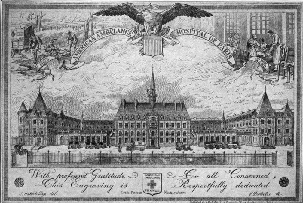 When the war came, the American Hospital considered the most practical expression of its sympathy for France would be the formation of an American Military Hospital. The French Government learned of this intention with deep gratitude and placed at the disposition of the little hospital a large, unfinished, high school building. the Lycée Pasteur, to be converted into a hospital for wounded French soldiers.