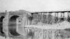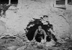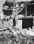 Fig. 14. House in which the nine men were sitting when hurled to the floor by shell exploding just outside. Soon afterwards a shell arrived making the large hole shown---and completely demolishing things within.