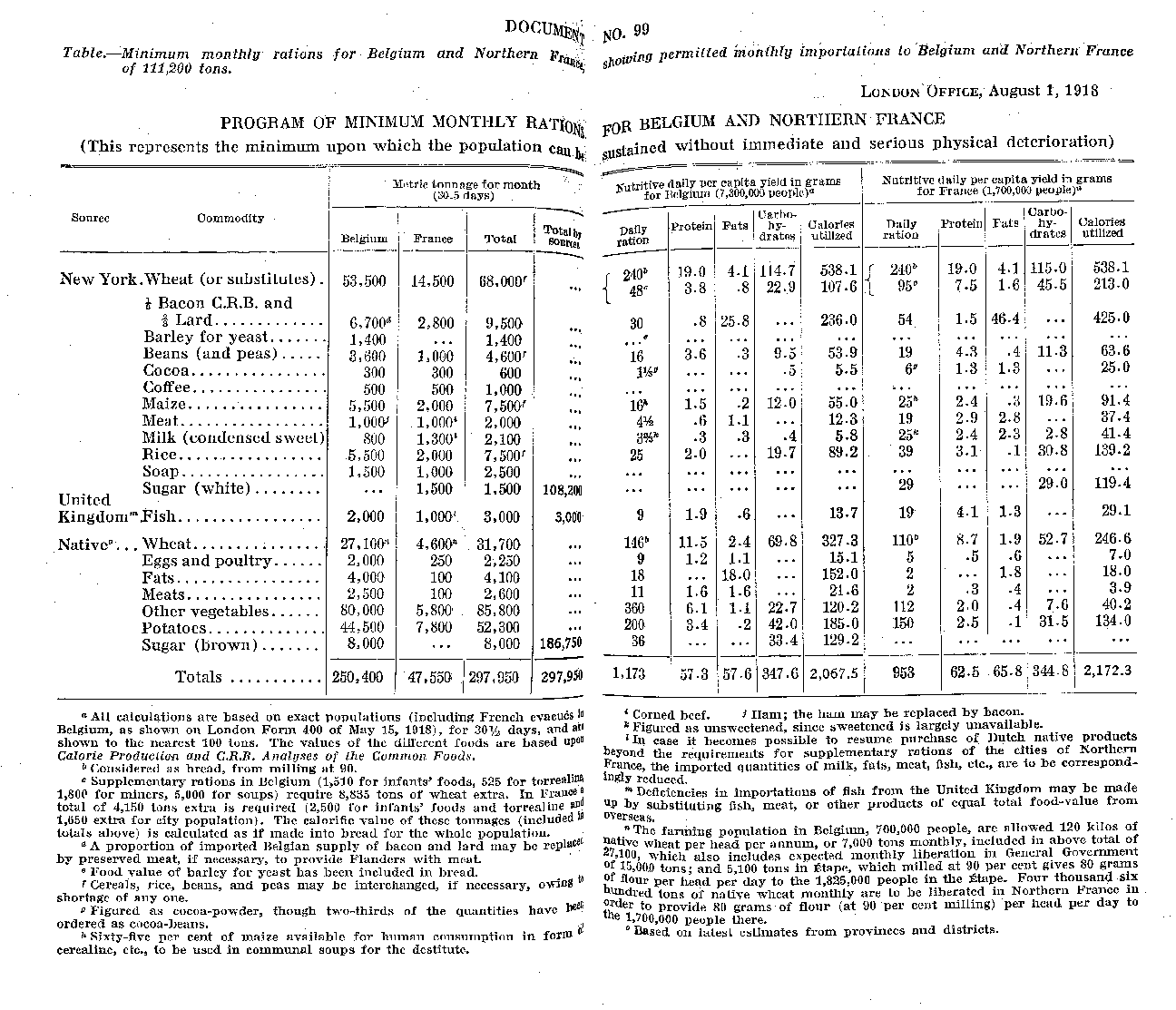 The two documents which follow describe the situation which confronted the Commission at the commencement of its third year. Hoover's detailed report on conditions in Belgium showed the extent and effect of the decrease in the production of native products and demonstrated the need of increased imports. The British Government's prompt approval of Hoover's program was the auspicious beginning of what proved to be the most difficult year of the Commission's life.