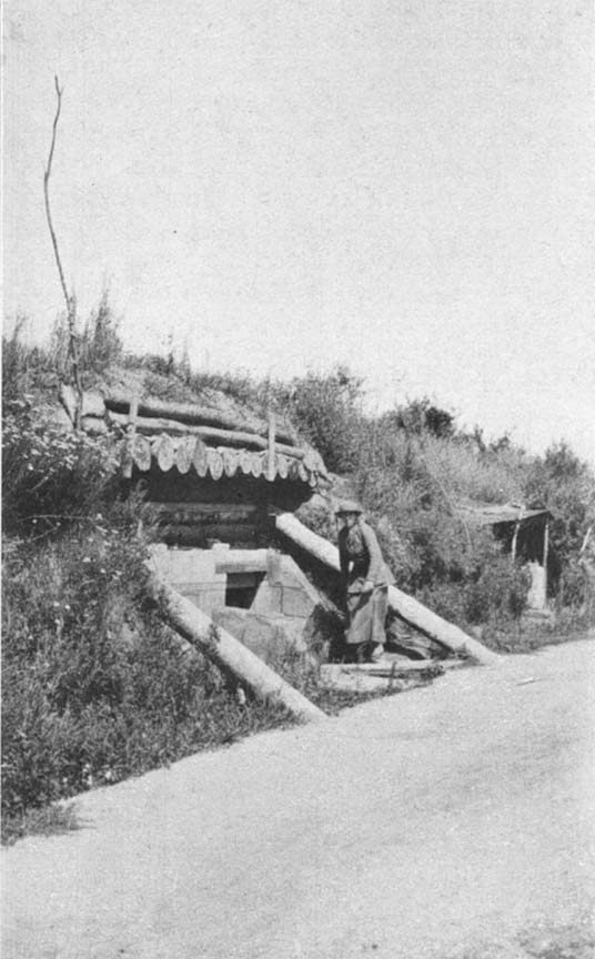 A short way from Soissons the road guard came out from his abri (these guards live in the funniest little holes in the side of the road) and he asked for our papers. The French officer with us asked if the road to Coucy was safe. The guard said, "They have not begun to shell it to-day, but dépêchez-vous." We hurried all right! And for one who had not been to war before it was thrilling.