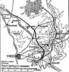 The present line of our trenches was in blue, and it plainly showed how Glencorse Wood proved a snag that held up a division, while that on the left, having gone well forward, was obliged to fall back as their right wing was in the air. And what a three years of war this particular region has seen! Gheluvelt, now in German hands and so far away! Yet there at the most critical moment of the first battle of Ypres, FitzClarence had the presence of mind to send the 2/ Worcesters in to stop the gap which kept the Germans from Calais and the coast---that fateful afternoon of October 31, 1914, when French and Haig thought the jig was up.