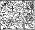 Then St. Jean and the Junction Road; and so northwest to Boundary Road, which runs north and south behind Admiral's Road, and so to Irish Farm (C27a5.2)(20) where is the Collecting Station for Walking Wounded of the Corps---a desperate place in a sea of mud and crater lakes. To be sure, there are still some fairly intact trees standing in this area, though most of them are broken and splintered past recall. The pollard willows, which encircle the little Flanders ponds, alone seem to have largely escaped, as though they had gradually become immune to wounds at the hand of man. Indeed, only by the fringe of willow stumps can one tell whether the pond is old or newly made by the rain filling a large crater. Every time a shell lands it of course makes a pond.