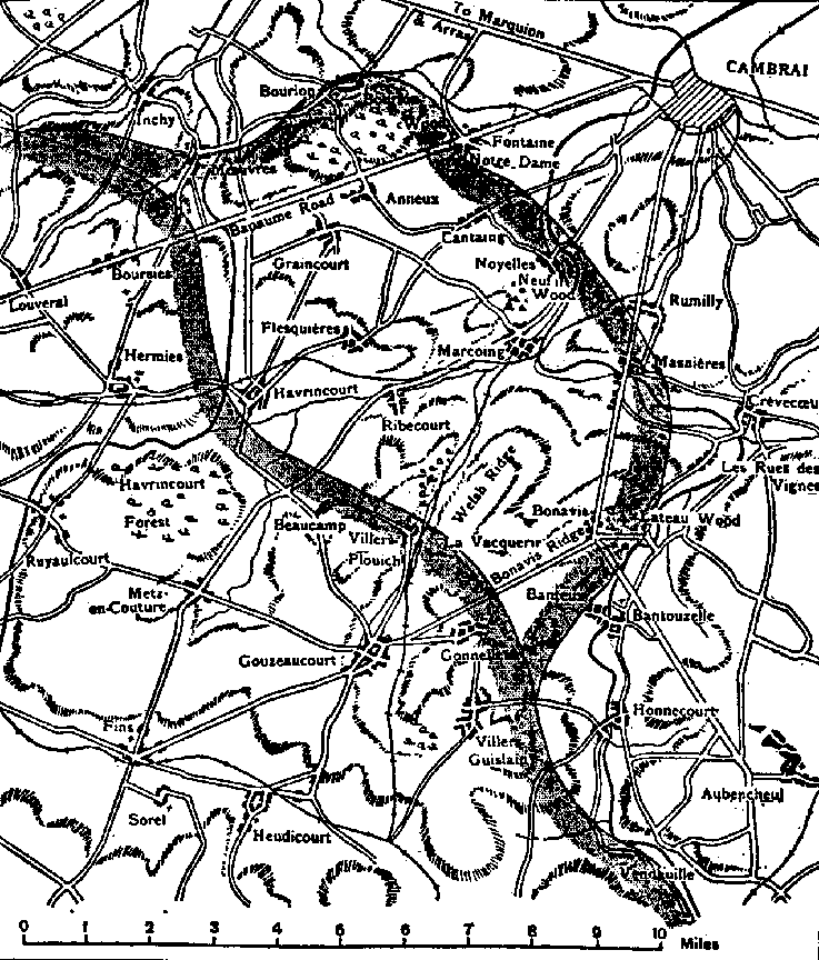 Col. Alexander sends word that my dear young friend Gideon Walker, the M.O. of the 2/Scots Guards, was killed in the Cambrai counter-attack of the 30th November---a brave lad---I've long expected it. Rumor has it that the Guards, who had been in the primary attack on the 20th, had been withdrawn and were suddenly called on to stem the onslaught on the southern side of the salient, where the Boche broke through, penetrating our original lines even to Gouzeaucourt and beyond.