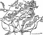 In the late p.m., Col. Peters and Moshier came with an invitation to dine at Aux Rietz corner with Sir David Watson, G.O.C. 4th Canadian Division. This sounds very swell but it was far from being swell---though exciting; for we were underground with occasional arrivées landing above us---but of this later on. In an 8-cylinder Cadillac we retraced our road of Thursday to Fresnicourt, where Moshier was dropped at his field ambulance---then up to the ridge at the N.E. end of the beautiful valley down beyond which the sun was brilliantly drinking water from behind a dark cloud---past the estaminet of the fairies and the large Druid stone table near by---past the headquarters of the 1St Army Commander, ditto of the Canadian Corps Commander, and soon the wooded top of the Lorette, from which the barren crest of Vimy Ridge came into view---and finally to the famous crossroads at La Targette.