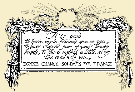 IN the presence of mortal conflict, where the fulfilment of their labor of friendship lies, the men whose names here follow have seen fortitude greater even than the courage of the wounded. They have beheld the strength of a people unified by sacrifice so complete that its individuals are unconscious of personal heroism. They have worked side by side with hundreds of thousands of men and women who in consummating this sacrifice have yielded, without measure of cost, their ambition and love, and challenged death ---with dauntless resolution to save not only their country, but the principles of democracy for the whole world. France, invincible in her resistance, has issued no acclamation of glory, has sought no sympathy for the costliness of the onslaught, nor published denunciation of the enemy, but by intrepid manhood has won the honor of all nations.