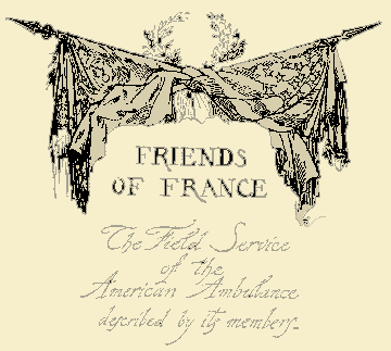 The little group of Americans told of in this book who, during the past two years, have dedicated valiant effort and, not unfrequently, risked their lives in the service of France, can best be thought of as only a symbol of millions of other Americans, men and women, who would gladly have welcomed an opportunity to do what these men have done --- or more. For, notwithstanding official silence and the injunctions of presidential prudence, the majority of Americans have come to appreciate the meaning, not only to France, but to all the world, of the issues that are today so desperately at stake, and their hearts and hopes are all with France in her gigantic struggle. They share with the world at large a feeling towards the French people of sympathy, of admiration, and, indeed, of reverence, such as exists towards the people of no other country; and millions of them, like these volunteers of the American Ambulance, have been tortured by a longing to have some share with the people of France in defending the ideals for which, as they feel, America has always stood, and for which France is now making such vast, such gallant, and such unflinching sacrifice.