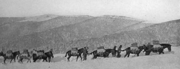 Supplies for the Soldiers being carried on Mules over