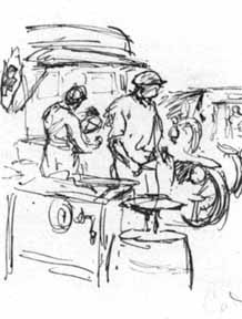 He is especially good at documenting the excellent relations existing among the French soldiers and the American volunteers, something mentioned by many other diarists in this series. Soccer matches between S.S.U. 31 and the 44th French Division are recounted, as well as the average French soldier's opinions about America which Wolfe thought were derived directly from films concerning the American West. His relating how the AFS worked administratively and in terms of evacuating wounded is concise and valuable, in addition to the maps and drawings on these subjects which are found throughout his Diary.