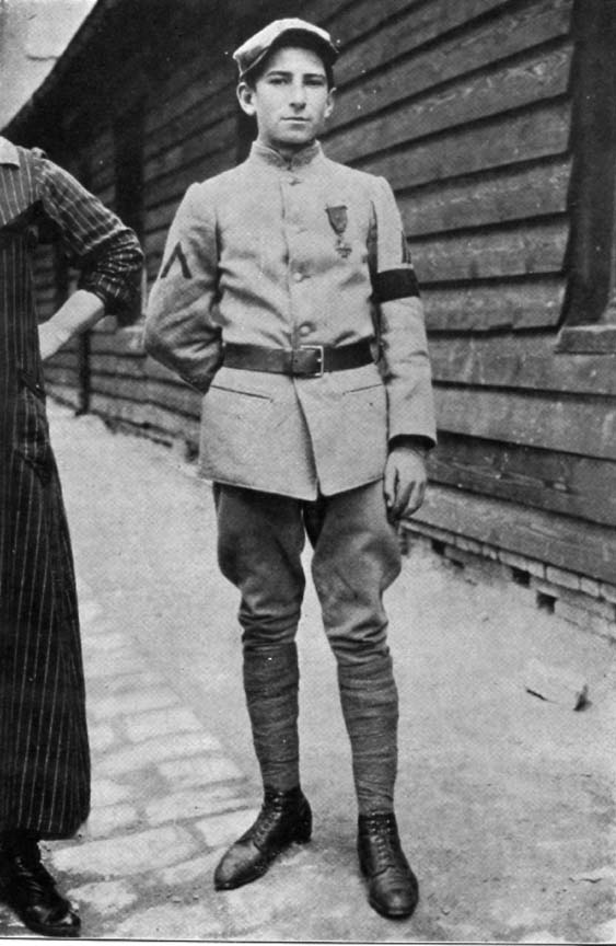 He told the soldiers that he had just seen his father killed by the Germans. One of the captains took him under his protection. The boy insisted on becoming a lighter. He was brave and they made him Corporal. He fell wounded in action, winning the Croix de Guerre.