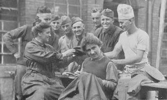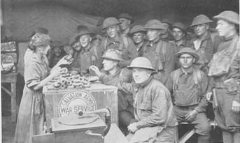 The Salvation Army hut was home to the boys over there. They came to it in sorrow or joy. They came to ask to scrape out the bowl where the cake batter had been stirred because mother used to let them do it; they came to get their coats mended and have their buttons sewed on. Sometimes it seemed to the long-suffering, smiling woman who sewed them on, as if they just ripped them off so she could sew them on again; if so, she did not mind. They came to mourn when they received no word from home; and when the mail came in and they were fortunate they came first to the hut waving their letter to tell of their good luck before they even opened it to read it. It is remarkable how they pinned their whole life on what these consecrated American women said to them over there. It is wonderful how they opened their hearts to them on religious subjects, and how they flocked to the religious meetings, seeming to really be hungry for them.