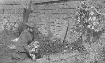 When the spot fell into the hands of the Allies, the grave was cared for by the Salvation Army; a new white cross set up beside the old one, and gentle hands smoothed the mound and made it shapely. On Decoration Day Colonel Barker placed upon this grave the beautiful flowers arranged for by cable by Commander Booth.