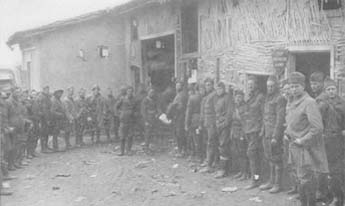 At last one of the men got up with his finished letter and quietly removed the phonograph and a few of its devotees who were not going up to the front yet, placing them outside at a safe distance from the hut. A soldier followed, carrying an armful of records, and the hut was cleared for the men who were "going in" that night.