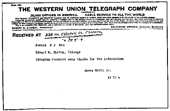 In acknowledgment of this message, the following morning I received this telegram from Senator Smith: